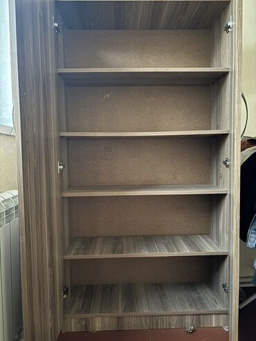 - Rəflər: 5 sabit rəf (ümumilikdə 6 bölmə) – kitab, sənəd qutuları, məişət əşyaları və geyim üçün uyğun