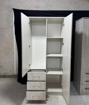 İki qapılı paltar şkafı – 3 rəfli bölmə və 3 ədəd çekmecə ilə