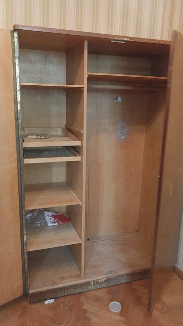 - Sağ bölmə: üst rəf, asılqan üçün çubuq, aşağıda geniş boşluq