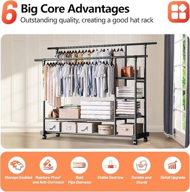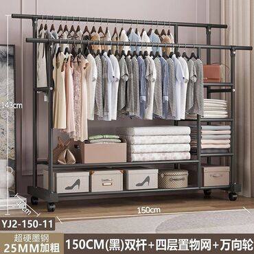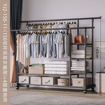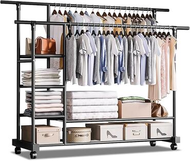 Asilqan 2 deneli ref 48kq dozumlu. Ölçü: 150sm*110 sm *40sm Asılqan rəf ikili Böyük Tutumlu istənilən yerə uyğun gəlir və uzun asılqan rels köynəkləri, şalvarları, paltoları və digər uzun p...