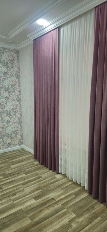 Məhsul: İkiqat pərdə dəsti + yataq çərçivəsi və döşək - Pərdələr: İki tərəfdə tünd boz rəngli, xırda naxışlı qalın pərdə; ortada krem rəngli, zolaqlı tül. Tavan altı gizli karnizlərlə tam örtüm ve...