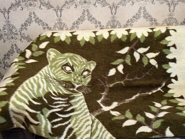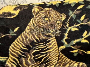 Qalın, yumşaq ipək-plüş tipli yorğan/pled - Dizayn: böyük pələng motivli ikiüzlü naxış. Bir üzü krem fon üzərində mavi-qəhvəyi pələng və budaqlar, digər üzündə tünd göy fon üzərində krem–mavi zola...