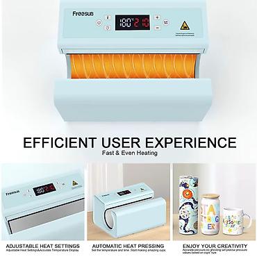 Görünüş məişət cihazı dizaynını qəbul edir və qabığı deformasiyaya uğramayan və əriməyən yüksək möhkəmliyə, yüksək temperatura davamlı plastikdən hazırlanmışdır. Genişləndirilmiş və daha böyük istilik lövhəsi sayəsində bu fincan istilik presi geniş çeşiddə fincanlar, stəkanlar, şüşə qablar, fincanlar, su şüşələri və saman fincanları üçün uyğundur.