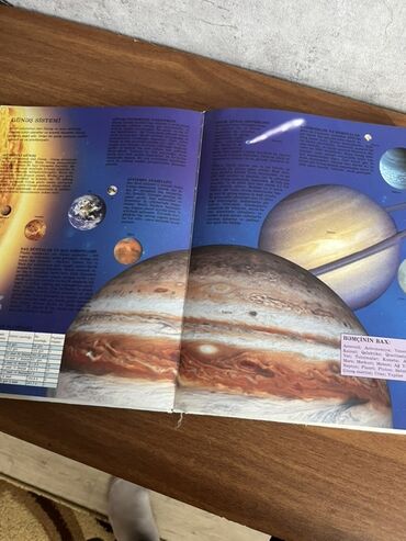 - Kosmos bölməsi iki səhifəlik böyük illüstrasiyalarla: Yupiter, Saturn, kometalar, asteroidlər və cədvəl məlumatları.