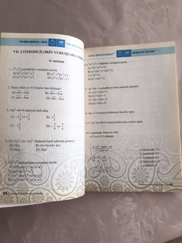 Bu, 7-ci sinif şagirdləri üçün nəzərdə tutulmuş riyaziyyat test kitabçasıdır. Kitabın üz qabığında mavi rəngli dizayn və "RİYAZİYYAT" başlığı əks olunub. Dərslik Təhsil Nazirliyinin Tədris Proqramına uyğun olaraq hazırlanmışdır. Hər mövzu üzrə testlər və çalışmalar daxildir. Kitab riyaziyyat biliklərini təkmilləşdirmək və imtahanlara hazırlaşmaq üçün faydalıdır.