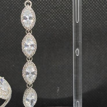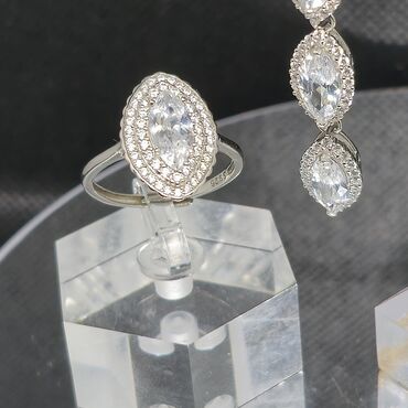 Brilliant model gümüş dəst sırğa üzük 925 prob daşlar təbii dağ bülluru brilliant ogranka ile Бриллиантовая модель серебро комплект серьги кольцо 925 пробы натуральный горный хрусталь бриллиантово...