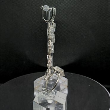 Gümüş rəngli zərgərlik dəsti – üzük və sırğalar - Dizayn: Sferik/yarımkürə formasında açıq işlikli (filigranvari) karkas. Hər hissə “çiçək” motivli qəfəs naxışı ilə hazırlanıb. - Bəzəklər: Karkası...