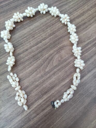 Təbii inci dənəciklərdən hazırlanmış əl işi boyunbağı..temiz cay mirvarisi - Material: xırda, düzensiz formalı krem-ağ rəngli təbii incilər - Dizayn: dənəciklərin qruplaşdırılaraq çiçəkvari qovçaq...