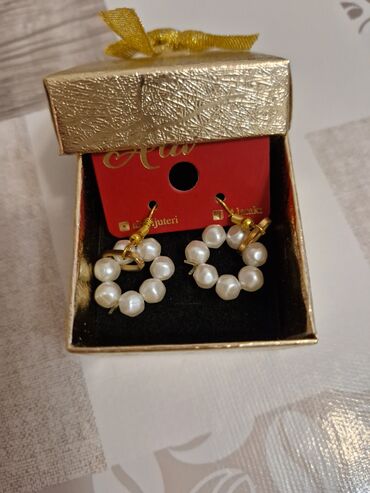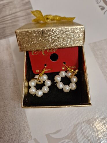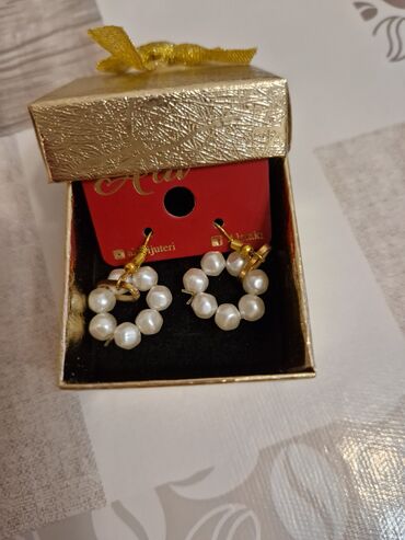 Məhsul: Handmade “With Love” sırğa cütü - Dizayn: Dairəvi forma, incilərdən düzülmüş halqa - Rənglər: Ağ inci muncuqlar, qızılı metal detallarla - Asma bəzək: Hər halqanın mərkəzində bənövşəyi min...