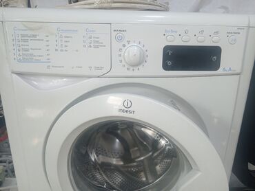 Dəst: su gəlmə və drenaj şlanqları görüntüdə mövcuddur. Dizayn – ağ korpus, Indesit loqosu və ön şüşəli lyuk.