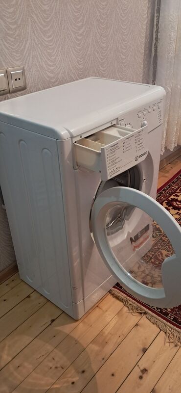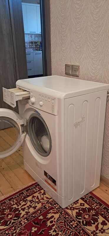 Ağ rəngdə Indesit IWSB 50851 markalı, öndən yükləməli paltaryuyan maşın. Bu model gündəlik paltar yuma ehtiyacları üçün etibarlı həll təklif edir. Paltaryuyan maşının üzərində müxtəlif yuma proqramları və funksiyaları təyin etmək üçün fırlanan düymələr və digər idarəetmə elementləri mövcuddur. Evdə istifadə üçün uyğundur.