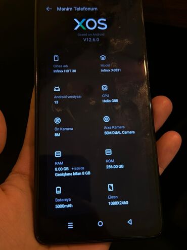 Infinix HOT 30 (model: Infinix X6831) - Sistem: XOS v12.6.0, Android 13 əsaslı - Prosessor: MediaTek Helio G88 - RAM: 8 GB + 8 GB genişlənən (Total 16 GB-a qədər) - Daxili yaddaş: 256 GB - Ekran: ...