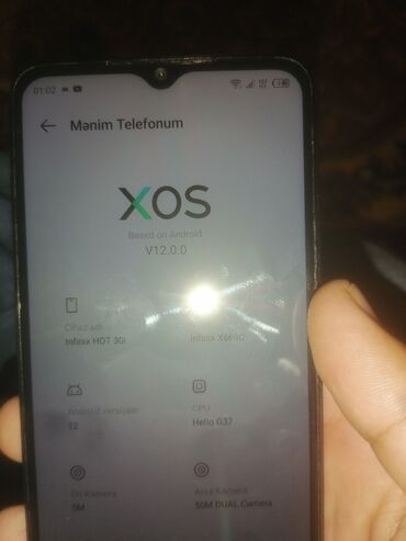 Infinix Hot 30 (model: Infinix X6831) – XOS V12.6.0, Android 13 əsaslı. Texniki xüsusiyyətlər: - Ekran: 1080 x 2400 çözünürlük, ön kamera üçün mərkəzi punch‑hole - Prosessor: MediaTek Helio G88 - ...