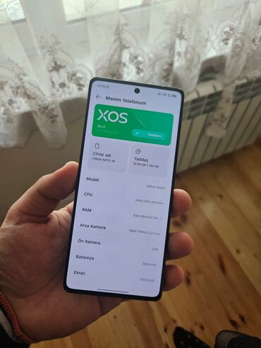İnfinix not 40 pro. Heç bir problemi yoxdur.Arxasındakı ləkə vinildədir. RAM 12+6, yaddaşı 256 gb. Təkcə kredit gecikməsi olub deyə nömrə yeri bağlıdır. Ödəniş edilir. Simsiz şarjı var. Hər şeyi va...