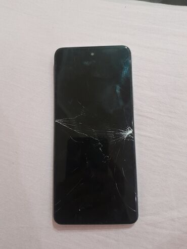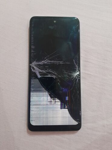 - Ekranda geniş çatlar və görüntü pozuntuları görünür; şüşədə çoxsaylı çatlar var.