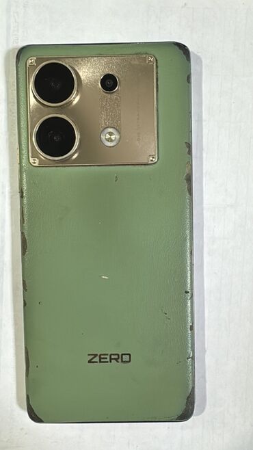 Infinix ZERO seriyası smartfon - Rəng: açıq yaşıl (arka paneldə “ZERO” loqosu), qara mühafizəli/keyslə birlikdə göstərilir - Arxa kamera bloku: iri iki əsas obyektiv + əlavə sensor və LED flaşlı d...Giriş•Qeydiyyat