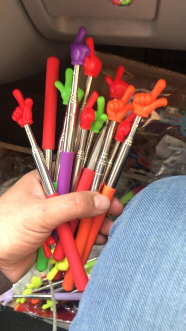 - Rənglər: çəhrayı, krem, mavi sap; ucları əl/işarə formalı plastikdən