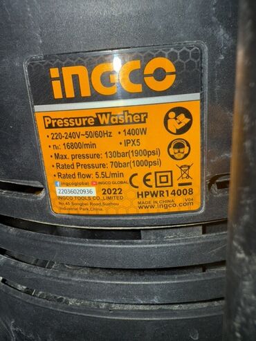 - Brend/model: INGCO Pressure Washer, HPWR14008