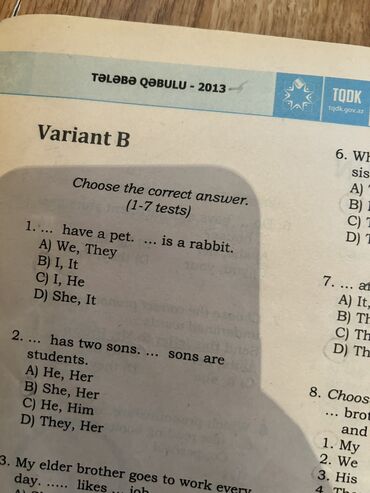 Yuxarı sıradan soldakı kitab 5-ci sinif ingilis dili TQDK-2013 test kitabı: 3 AZN