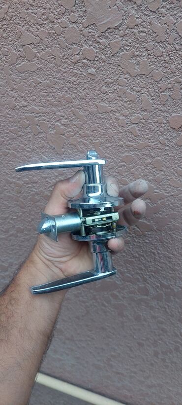 - Komplektasiya: iki tərəfli qol dəsti, gövdə/meqanizm, dil (latch) və bərkidilmə elementləri şəkillərdə göründüyü kimidir
