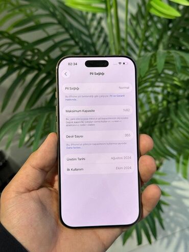 Apple iPhone 16 Pro Desert Titanium 256GB/8GB. Telefon ideal vəziyyətdədir nöqtə cızıq əzik yoxdur qəti ustada olmayıb 1 il rəsmi zımanıt verilir 92% pil sağlamlığıdır.