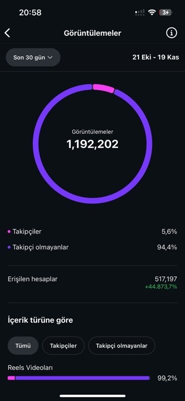 - Görüntüləmələrin 99%+ hissəsi Reels videolarından
