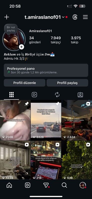 Hesab: t.amiraslanof01 (Reels mərkəzli məzmun)