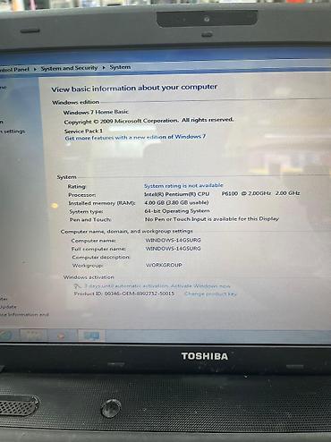 Toshiba noutbuk Texniki xüsusiyyətlər: - Prosessor: Intel Core 2 Duo T5800, 2.0 GHz - RAM: 3 GB (64-bit sistemdə) - Əməliyyat sistemi: Windows 7 Home Premium, Service Pack 1 (aktivləşdirilib) - Ek...