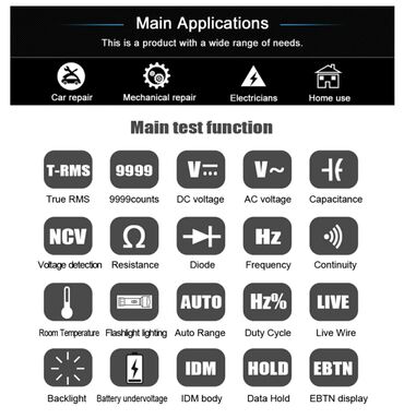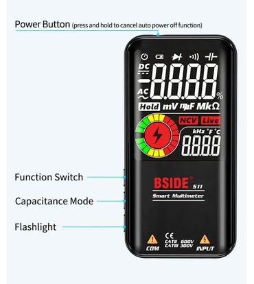 ● Avtomatik identifikasiya testin səmərəliliyini əhəmiyyətli dərəcədə artıra bilər. İntellektual BSIDE texnologiyası multimetrə avtomatik olaraq test parametrlərini aşkar etməyə və tələb olunan diapazonu seçməyə imkan verir.