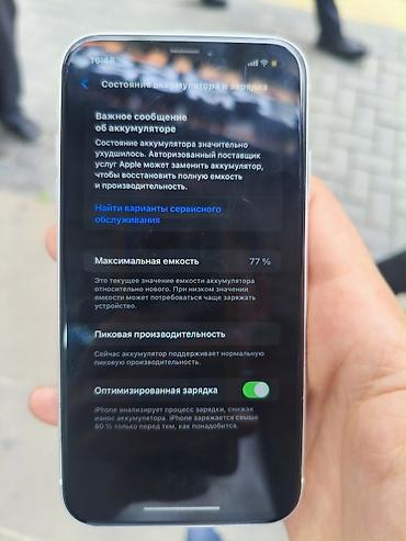 - Batareya məlumatı: Maksimal tutum 77% göstərilir; iOS enerji bölməsində “Optimallaşdırılmış enerji yüklənməsi” aktivdir, pik məhsuldarlıq normaldır (ekran şəkillərində görünür)