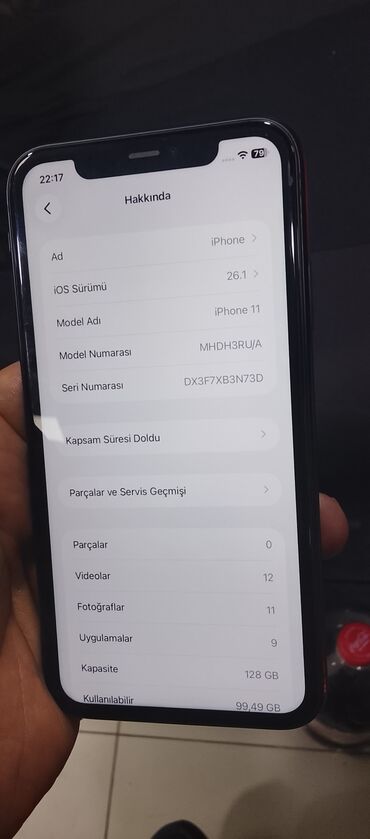 Salam iphone 11 78 pil face id aktıv tam zavod