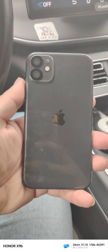 Apple iPhone (qara rəng) - Model: iPhone 11 - Rəng: Qara - Ekran: 6.1" - Face ID işləyir - Arxa kamera: İkiqat kamera sistemi (geniş + ultra‑geniş), LED fləş - ESim aktivdir. - Batareya: 80% - Ek...