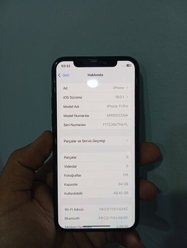 Ünvandan götürməIPhone 11 Pro hec bir problemi yoxdur tək Pil deyisilib. seliqeli veziyyetdedir
