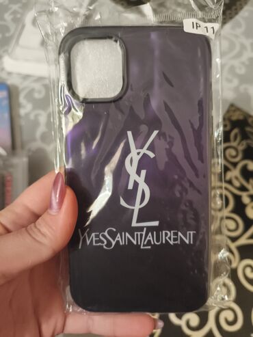• Bənövşəyi-qara keçid fonlu “Yves Saint Laurent” loqolu model.