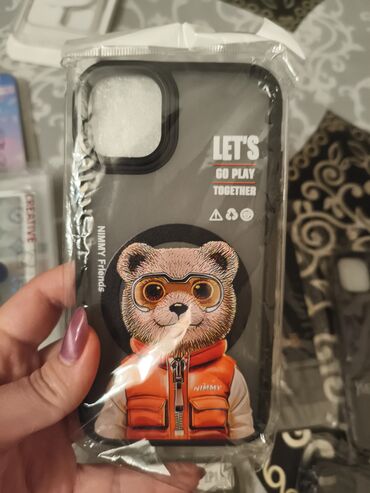 - Ayı təsvirli tematik case (“LET’S GO PLAY TOGETHER” yazılı) – qabarıq qrafika, maraqlı dizayn