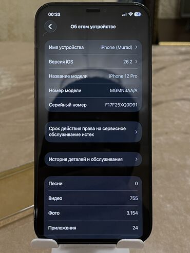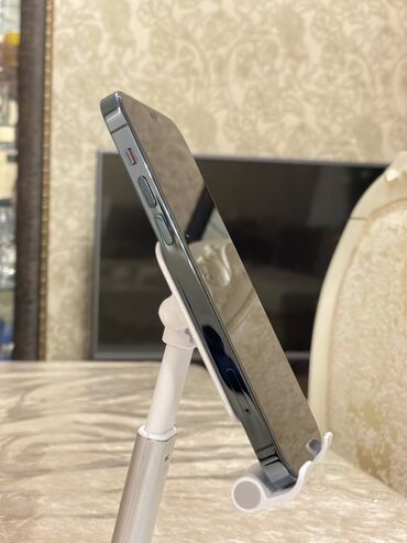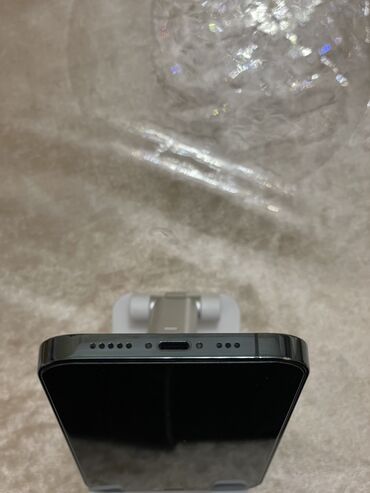 Apple iPhone (Pro seriyası) - Rəng: Qrafit/qara tonlu (mat arxa səth, Apple loqosu) - Korpus: küncləri düz xəttli dizayn, şüşə arxa və metal çərçivə - Ekran: Full‑screen OLED, Dynamic Island kəsiy...