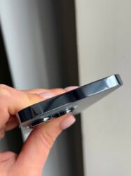 Mavi rəngdə iPhone 13 mini, şəffaf korpus.Telefonun ön tərəfində "çərçivəsiz" displey var. Arxa tərəfdə iki kamera və Apple loqosu yerləşir. Bu model MagSafe simsiz şarj texnologiyasını dəstəkləyir...