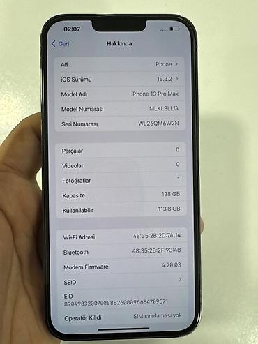IPhone 13 Pro Max, 128 GB, Ağ, Face ID, Zəmanət, Barmaq izi