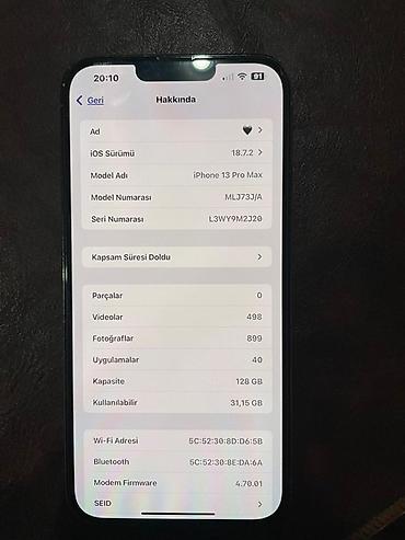 - Model: iPhone 13 Pro Max (model nömrəsi: MLJ73J/A)