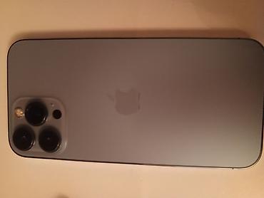 Bu, Apple istehsalı olan iPhone 13 Pro modelidir. Telefonun arxa tərəfində üçlü kamera sistemi mövcuddur. Gövdənin rəngi Sierra Blue-dur və kənarları gümüşü rəngdədir. Ekran qara rəngdədir. Yan tərəfdə səs tənzimləmə düymələri və güc düyməsi yerləşir. Bu model yüksək performans və keyfiyyətli foto/video çəkiliş imkanları təklif edir.