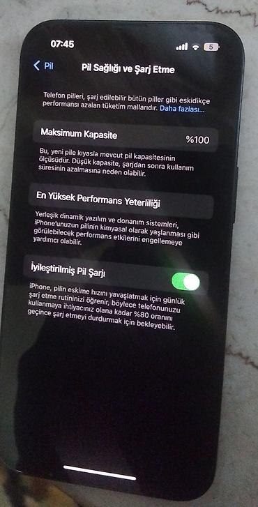 - iOS interfeysi türk dili ilə quraşdırılıb (ekran görüntüsündə “Pil Sağlığı ve Şarj Etme” bölməsi görünür).