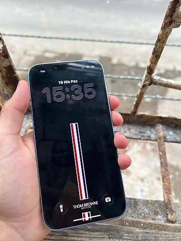 Apple iPhone15 plus (açıq mavi) - Yaddaş 256 -Pil ömrü 87% - Rəng: açıq mavi - Korpus: Düz kənarlı alüminium çərçivə, şüşə arxa - Ekran: Tam ekran, Face ID üçün ön kamera və sensor çıxışı - Rəsmilə...