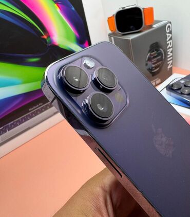 Iphone 14 pro, deep purple, 256 GB. Telefon xanım tərəfindən çox səliqəli formada, həmişə kabro və ekran qoruyucuda işlədilib. Nöqtə boyda da cızığı yoxdur. Heç bir hissəsi dəyişdirilməyib, zədələn...