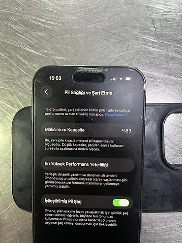 - Batareya: “Pil Sağlığı və Şarj Etmə” bölməsində maksimum tutum 83% göstərilir; “İyiləşdirilmiş Pil Şarjı” aktivdir