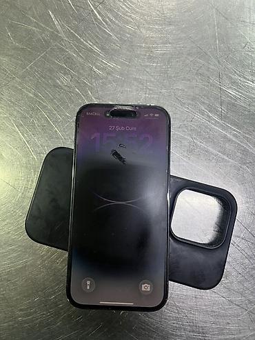 Telefon işlək vəziyyətdə göstərilib, ekran və sistem menyuları açıq şəkildə görünür. Rəng və kamera modulu aydın görünən 14 Pro dizaynıdır. Telefon alinan günden vinil çekilib. Telefonda çizix deyilen birsey yoxdu.