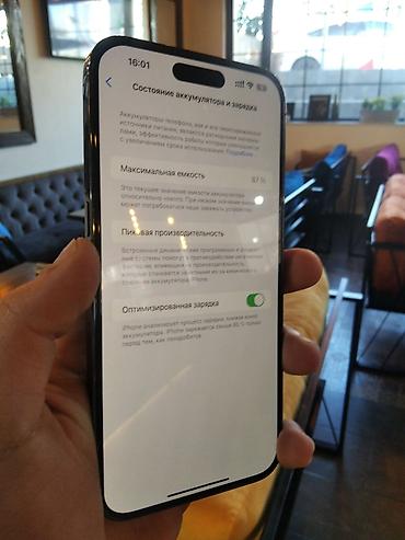 - Batareya sağlamlığı: 87% (ekranda göstərilir), Optimized Battery Charging aktivdir