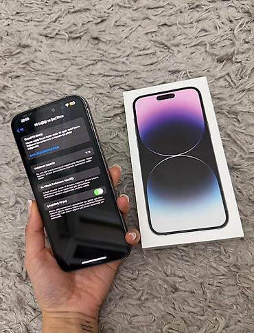 Məhsul: Apple iPhone 14 Pro 128 Gb pil 81% acilmayib 980 sondu idealdur karopqz usb var barter olunmur Rəng: Tünd bənövşəyi (Deep Purple) Komplekt: Orijinal qutu, USB‑C – Lightning şarj kabeli, sə...