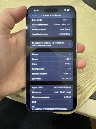 IPhone 14 Pro max 1tb – 6.1" Super Retina XDR OLED ekran, Always‑On Display və Dynamic Island.