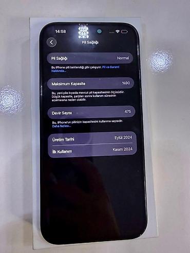 - Batareya məlumatları (ekran şəklinə əsasən): Pil Sağlığı – Normal, Maksimum tutum – 90%, Dövr sayı – 475
