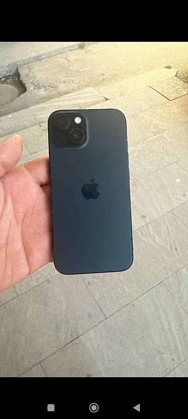 IPhone 15 Qara 128gb (qutu ilə) - Rəng: Space Black - Ekran: ideal, cızıq yoxdur - SIM: dual - Battery: 88% Qeyd: - Təmirdə olmayıb - Arxa şüşənin aşağı sağ küncündə zədə var) Başqa heç bir probl...